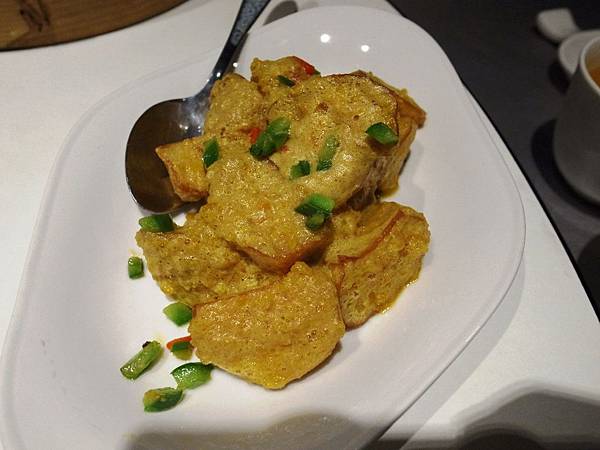 Fried Abalone Mushrooms in salty egg yellow sauce.