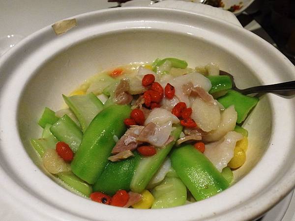 Stewd fish with Luffa & Goji.
