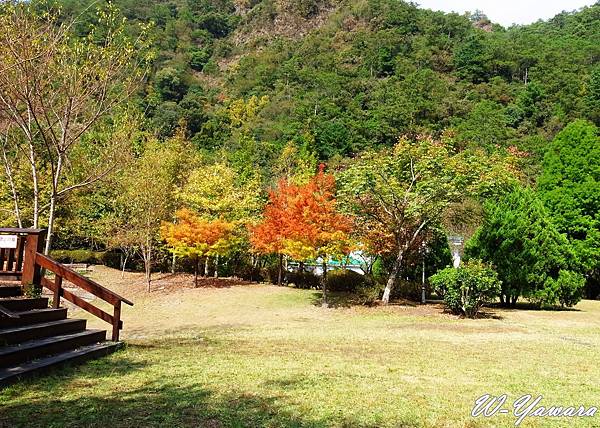 只有幾株比較紅的楓葉