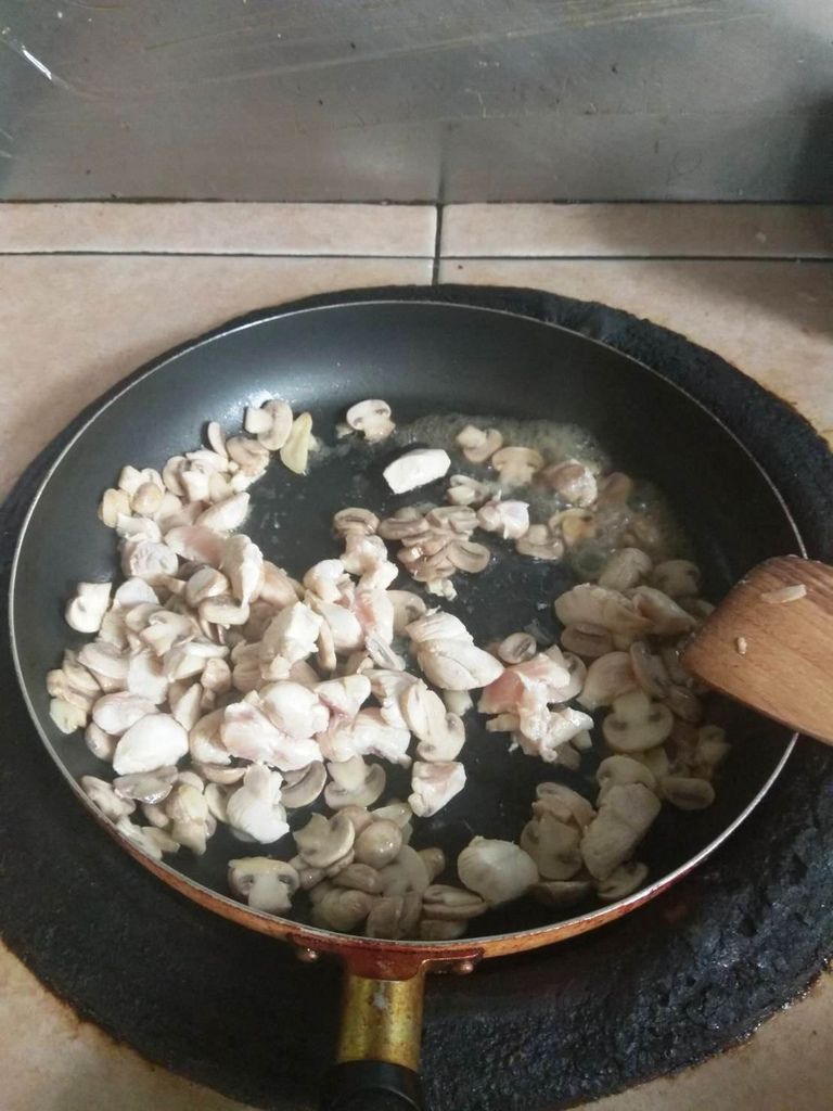 最後加入洋菇拌炒~